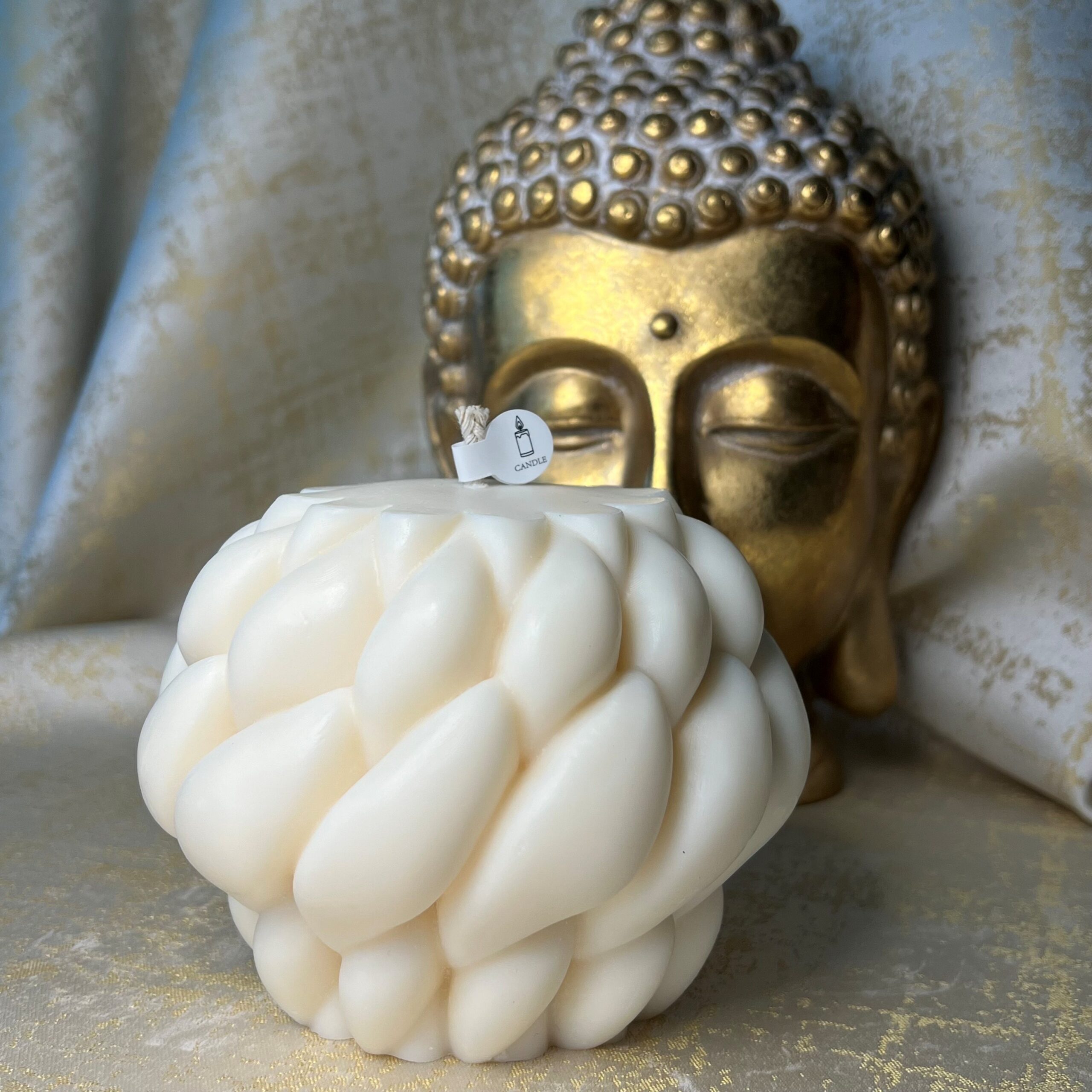 Silmatorkav ja ainulaadne disain, mis meenutab põimunud lehti või kroonlehti – see suur käsitööküünal on sisustuselement omaette. Ideaalne neile, kes hindavad vormi, kestvust ja luksuslikku viimistlust.