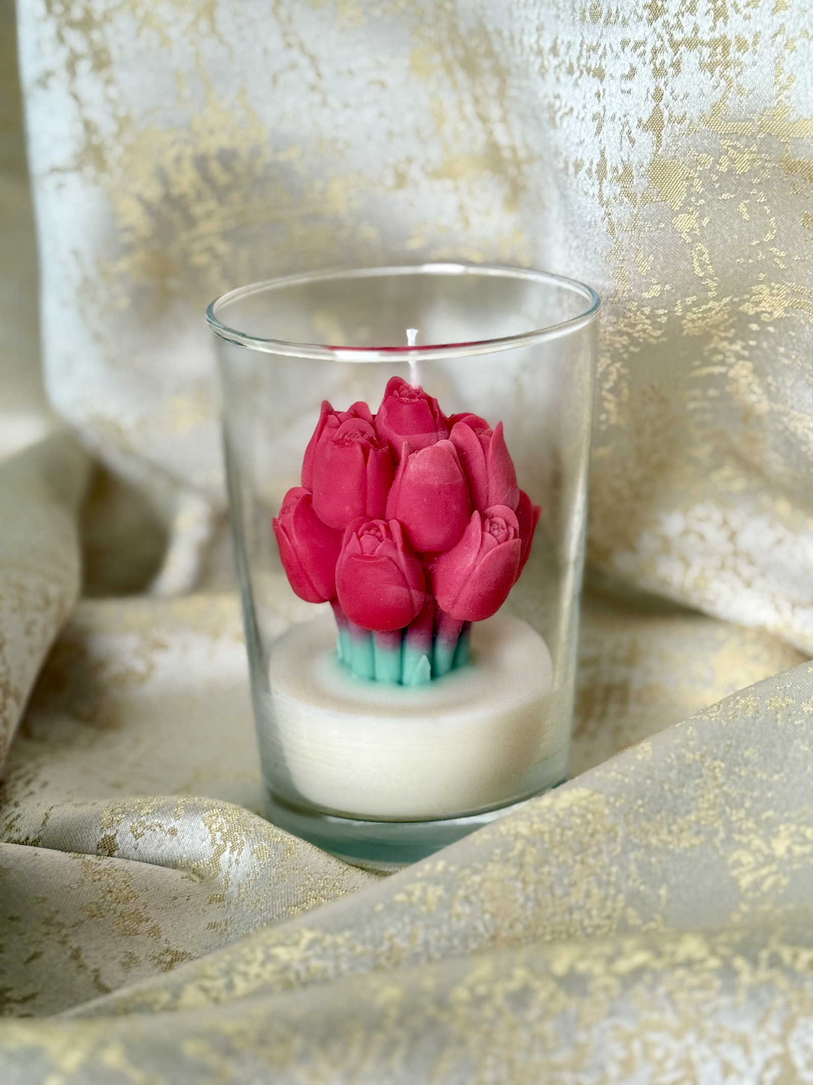 Pastelsetes toonides tulpidebukett, mis jääb alatiseks kevadiselt värskeks. See käsitsi valatud sojavahast küünal klaasis loob harmoonilise ja romantilise meeleolu – ideaalne kingitus või kodu pilgupüüdja.